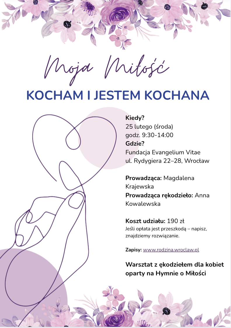 Co:  Warsztat: „Moja miłość – kocham i jestem kochana” (kontekst Biblijny: Hymn o miłości)