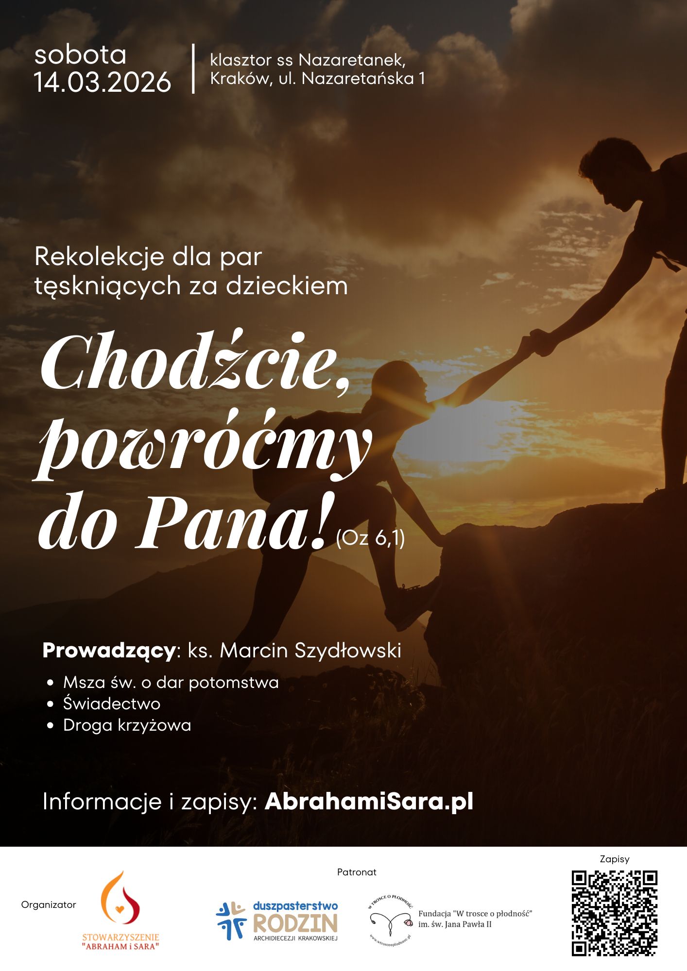 Więcej informacji i zapisy: https://abrahamisara.pl/wydarzenia/14-03-krakow-dzien-skupienia-chodzcie-powrocmy-do-pana/
